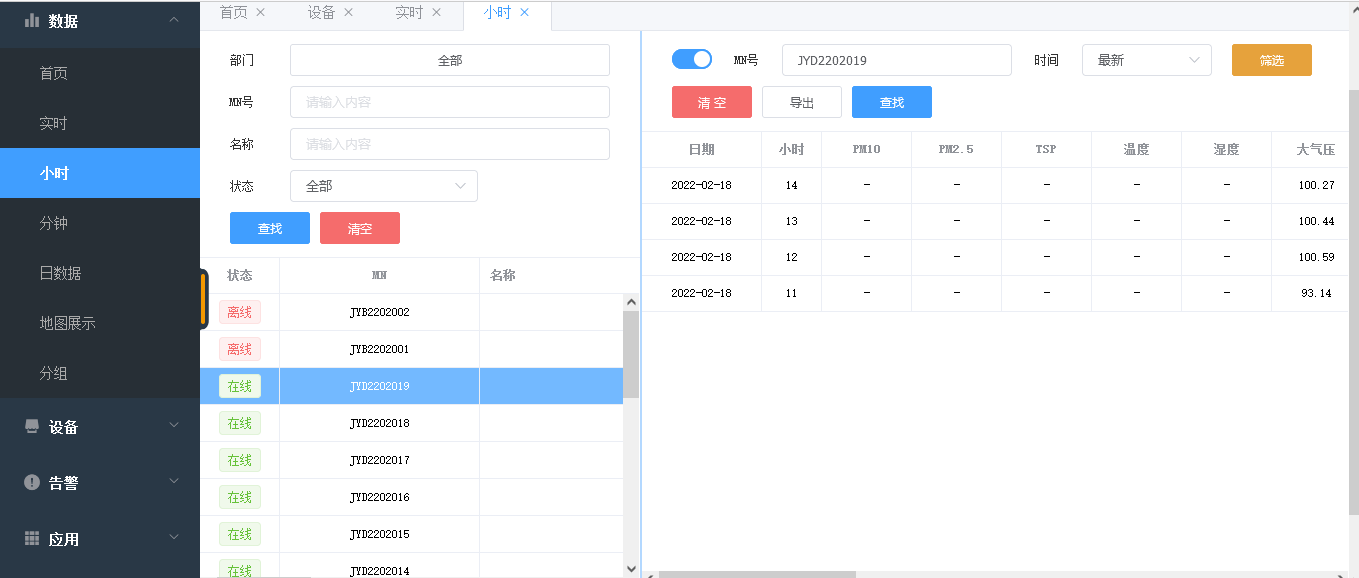 6.濃度報(bào)警:能夠?qū)P(yáng)塵監(jiān)測(cè)設(shè)備數(shù)據(jù)濃度等指標(biāo)進(jìn)行實(shí)時(shí)監(jiān)測(cè),對(duì)排放超標(biāo)數(shù)據(jù)進(jìn)行實(shí)時(shí)報(bào)警。